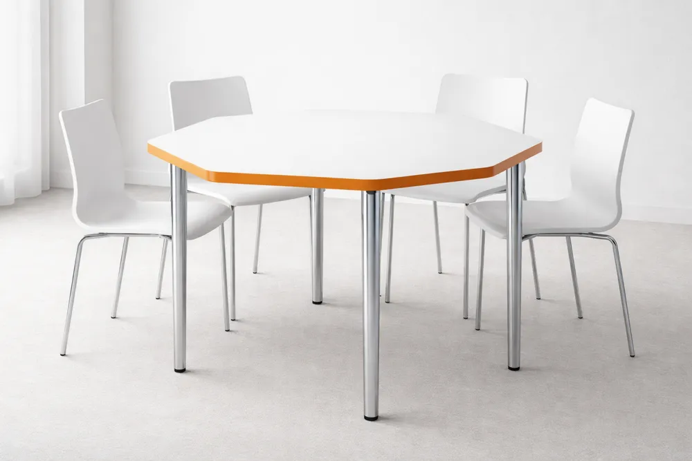 Table octogonale et chaises en métal Blanc