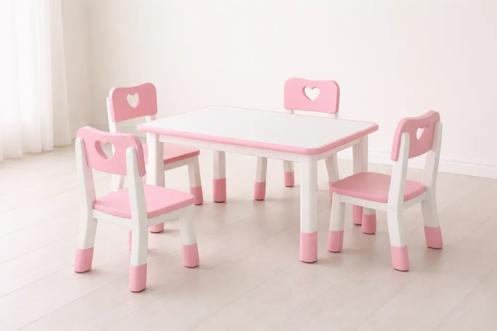 Ensemble comprenant une table et quatre chaises pour enfants de 3 à 6 ans. Fabriqué en polypropylène (PP).